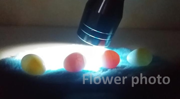 La femelle a pondu quatre oeufs. Je les ai mirés au septième jour. Comme nous pouvons le voir, deux sont fécondés. Le deuxième et le troisième. Elle a malheureusement abandonné sa couvée au onzième jour. Les petits n'ont donc pas eu le temps d'éclore.